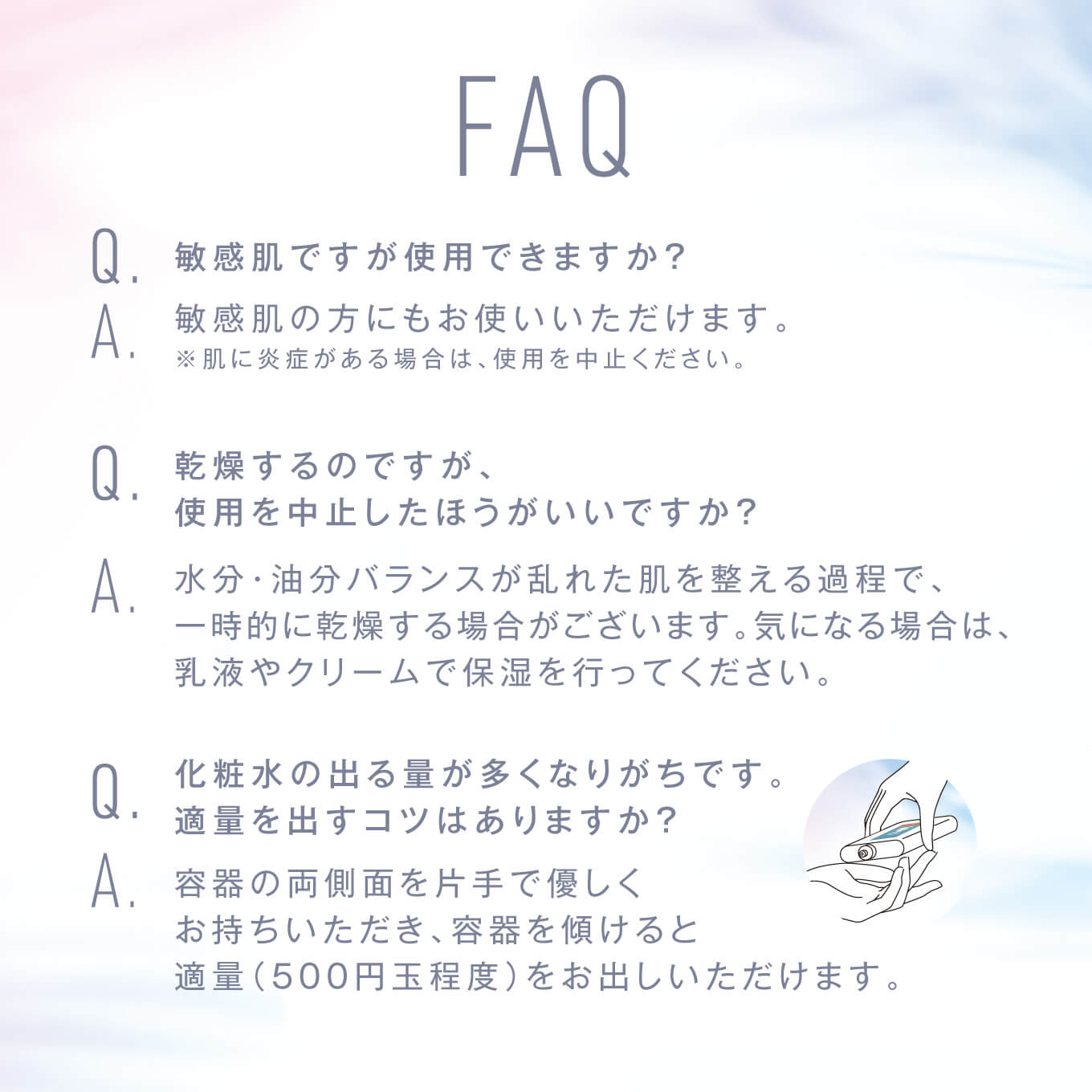 | ご使用方法 | 朝晩の洗顔後、5 0 0 円玉程度を手に取り、顔全体になじませてください。 |