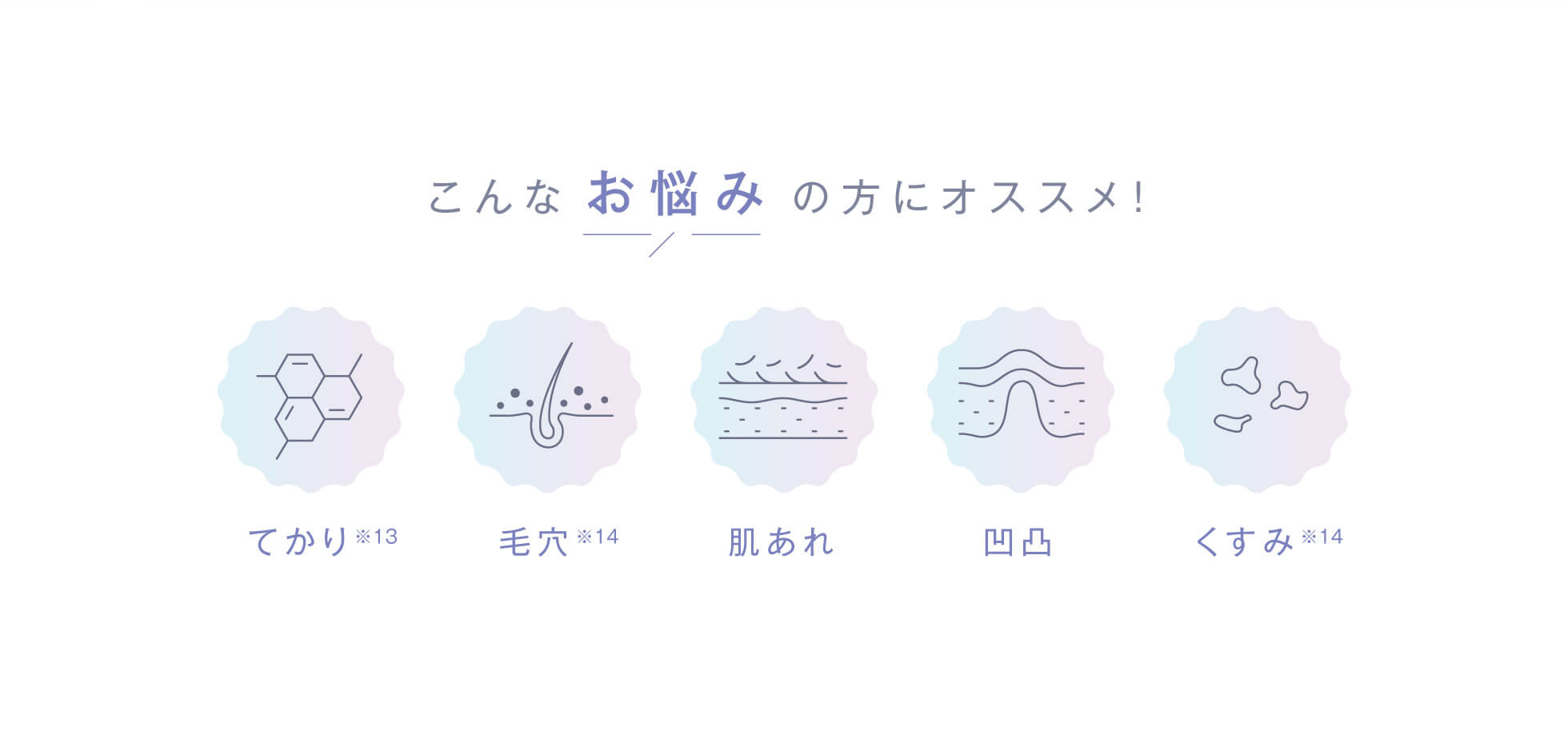 | ご使用上の注意 | 1.お肌に異常が生じていないかよく注意して使用してください。 化粧品がお肌に合わないとき即ち次のような場合には、使用を中止してください。 そのまま化粧品類の使用を続けますと、症状を悪化させることがありますので、皮膚科専門医等にご相談されることをおすすめします。 (1)使用中、赤味、はれ、かゆみ、刺激、色抜け(白斑等)や黒ずみ等の異常があらわれた場合 (2)使用したお肌に、直接日光があたって上記のような異常があらわれた場合 2. 傷やはれもの、しっしん等、異常のある部位にはお使いにならないでください。 3.目に入らないようご注意ください。目に入った場合はこすらず、すぐに水で洗い流してください。 |